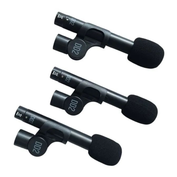 contém um microfone de bumbo modelo DD-1, quatro microfones para tons e caixa
