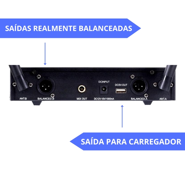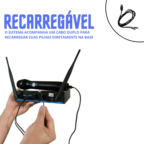 O Microfone sem fio Duplo DW-902 POWER conta com: