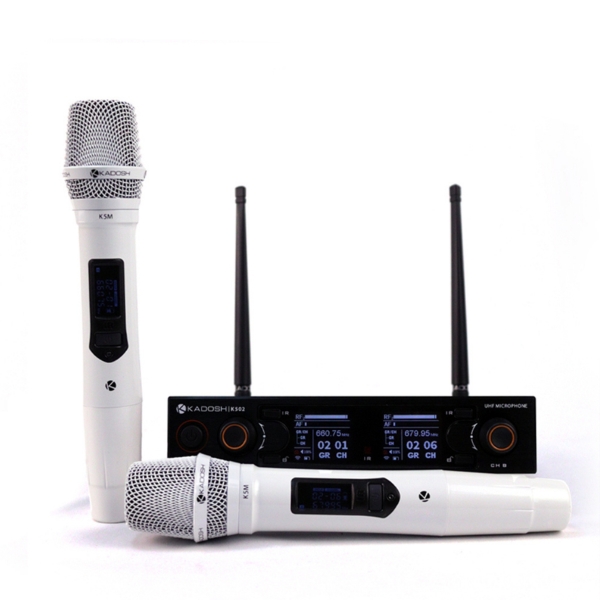 MICROFONE KADOSH S/ FIO DUPLO DE MAO BRANCO PILHA REC K502M