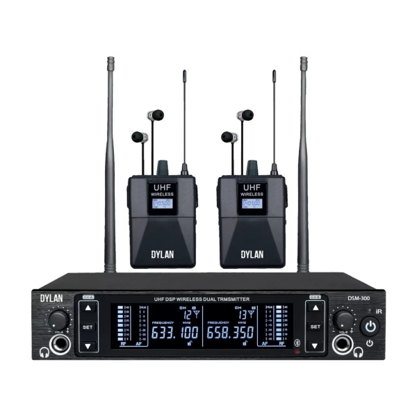 Monitor Sem Fio In Ear Dylan DSM-300 Duplo Receptor UHF 100 Canais